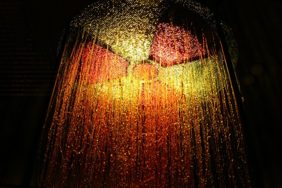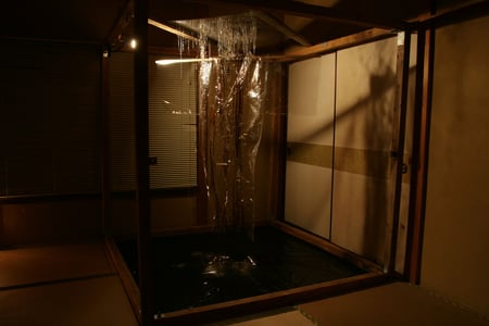 This work is based on the ghost story “Amekai Yurei (Candy-buying ghost).” In the process of dripping down, liquid candy solidifies at room temperature, and remains in that shape.