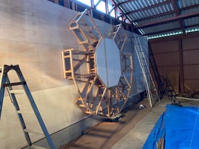 きのこ栽培の工場跡地を再利用したスタジオ。展示スペースや作業スペース、作品保管スペースを確保。大型の作品から小型の作品まで制作可能。